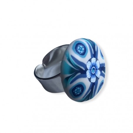 Bague fleurie en pâte polymère. Motifs réalisés par mes soins avec la technique du millefiori.