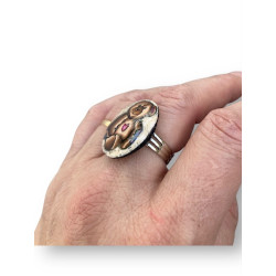 Le support, solidement intégré et réglable, assure un confort optimal au quotidien. C’est une pièce unique, vous ne la retrouverez nulle part ailleurs : cette bague est une véritable miniature d’artisanat poétique.