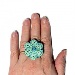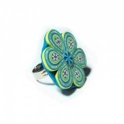 Bague fleurie en pâte polymère. Motifs réalisés par mes soins avec la technique du millefiori.