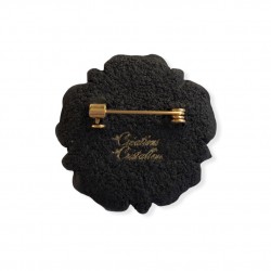 Dos de la fleur noir uni texturé, monture intégrée à la pâte et pièce signée.